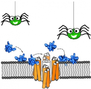 Un candidat antidouleur idéal : les biologistes décryptent le mode d'action de la toxine avec pour objectif la conception et l'optimisation de nouveaux traitements contre la douleur. Protx-II se lie au récepteur de la douleur située à l'intérieur de la membrane des cellules neuronales. Précisément, la membrane cellulaire attire le peptide au neurone, augmente sa concentration à proximité des récepteurs de la douleur -en particulier un récepteur nommé Nav 1.7- et verrouille le peptide dans la bonne orientation pour maximiser son interaction avec la cellule hôte.