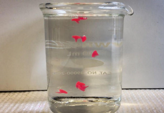 Les gels sous forme de nanoémulsion apportent un nouveau mode de délivrance cutanée et transcutanée des médicaments, promet cette équipe du Massachusetts Institute of Technologie (MIT) soutenue par L’Oréal. Ces ingénieurs chimistes ont mis au point un processus de conversion nanoémulsions liquides en gels solides. Ces gels (en rouge sur visuel) se forment presque instantanément lorsque des gouttes de l'émulsion liquide sont exposées à la température corporelle. Ce nouveau matériau fabriqué avec des composants approuvés par la FDA pourrait permettre la délivrance de charges élevées d'agents actifs.