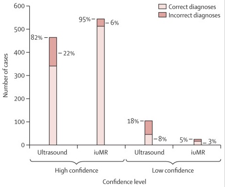 Les chercheurs ont donc regardé si le recours complémentaire à l'IRM pourrait permettre d'améliorer les taux de diagnostic. Leur étude a été menée chez 570 femmes enceintes à risque élevé : chez ces femmes, une anomalie cérébrale fœtale avait préalablement été détectée par échographie. L'étude constate une amélioration de 25% des taux de diagnostic en cas de recours à l'IRM en plus de l'échographie. Précisément, avec IRM en plus de l'échographie standard, l'exactitude diagnostique a été améliorée de :