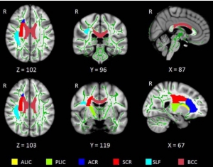 · une réduction globale de l'intégrité de la substance blanche dans plusieurs zones de l'hémisphère droit et le thalamus qui régule la conscience, le sommeil et la vigilance.