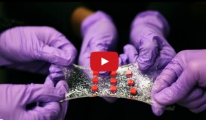 Ces ingénieurs du Massachusetts Institute of Technology ont développé ce qui pourrait devenir le dispositif de pansement du futur, un pansement très intelligent qui combine l’électronique à la pharmacothérapie : il utilise ainsi les données « électroniques » à des fins thérapeutiques. Concrètement, il s’agit d’un matériau collant, extensible, comparable à un gel qui peut intégrer des capteurs de température et donc délivrer « en cas de surchauffe » et de manière hypertopique de minuscules quantités de médicament. Bref la diffusion du médicament peut être régulée par la température de la peau.