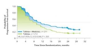 · En particulier, la combinaison Brafi + Meki (Tafinlar® (dabrafenib) un inhibiteur de BRAF + Mekinist® (trametinib), un inhibiteur de MEK1/2), un traitement de première ligne -en dehors de l'immunothérapie- est délivrée dans 75% des pays d'Europe occidentale et remboursés en moyenne à 58%. En Europe orientale, le traitement n'est délivré que dans 42% des pays et très peu remboursé (18% en moyenne).