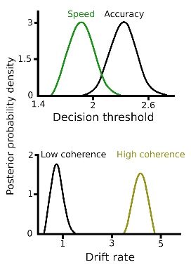 -les participants prennent des décisions beaucoup plus rapides lorsque la tâche est plus facile, soit les points se déplaçant dans une seule direction et également, quand on leur demande de prendre une décision rapide ;