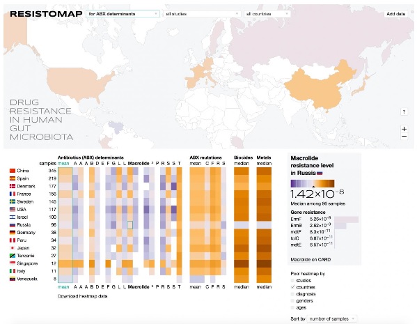 En 2014, la résistance aux médicaments était dénoncée comme une urgence de Santé publique par l'Organisation mondiale de la santé (OMS). L'OMS alertait sur le passage à une ère d'antibiorésistance, qui verrait des infections courantes et des blessures mineures conduire au décès. Dès 2050, la pharmacorésistance causée par l'utilisation intensive et non contrôlée des antibiotiques, tant en médecine que dans l'élevage, pourrait entraîner 10 millions de décès chaque année. Ces scientifiques russes apportent aujourd'hui leur contribution à la lutte contre l'antibiorésistance en créant la ResistoMap ou visualisation interactive et mondiale des microbiomes résistants, ou gènes de résistance aux antibiotiques dans les génomes des microbes intestinaux humains. Cette carte mondiale des microbiomes résistants permet de formuler des hypothèses sur les grandes tendances mondiales de l'antibiorésistance aux antibiotiques et de réajuster les tendances d'utilisation d'antibiotiques.